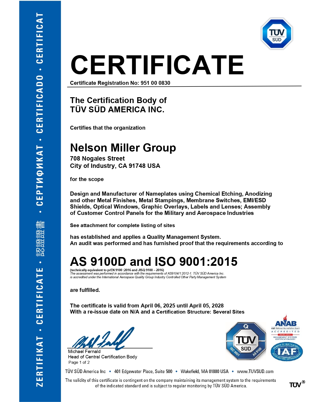AS9100D & ISO 9001-2015 - Nelson Miller